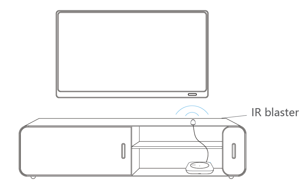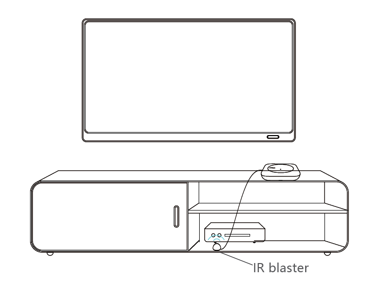 To control devices that are inside a cabinet, box, or behind adoor, connect the included wired IR blaster. Aim its emitterhead directly at each device’s IR sensor.