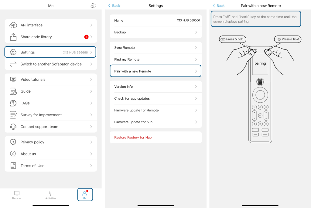 a. Repair the remote with the Hub (see pairing instructions below)