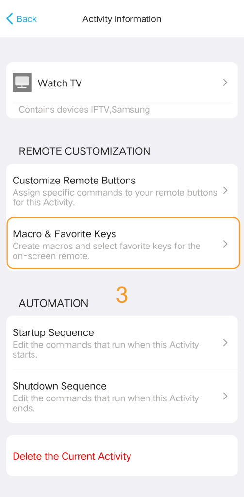 To access these settings, navigate to: Activities > Edit > [Your Activity Name] Edit > Macro & Favorite Keys.