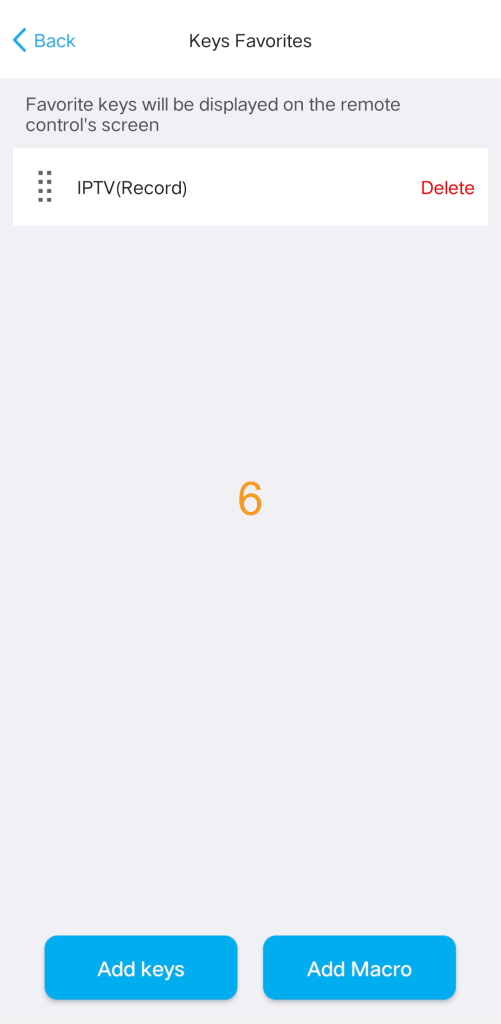 Macro & Favorite Keys: If the physical keys on your remote aren’t enough, you can create macros and select favorite keys in the app. These will appear as soft keys on your remote’s screen.