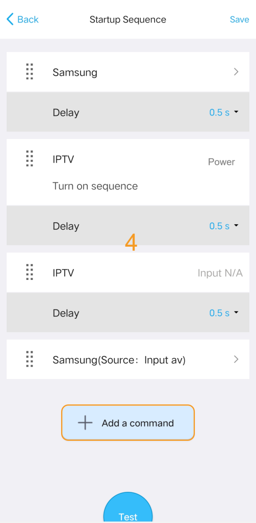 4) Test & Save: Review the full sequence, then test the Activity startup to ensure the new commands work before saving your changes.