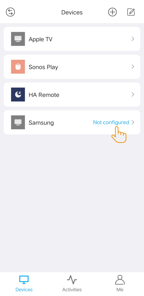 When you add a new device, you may notice a “not configured” tab on the right side of the device. This is a reminder that you need to complete some task before creating an activity. Click on this tag for more detailed.