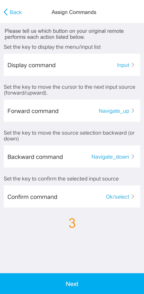 For this method, you must teach the Hub which single button (e.g.,’Source’) to press repeatedly to cycle through inputs.
