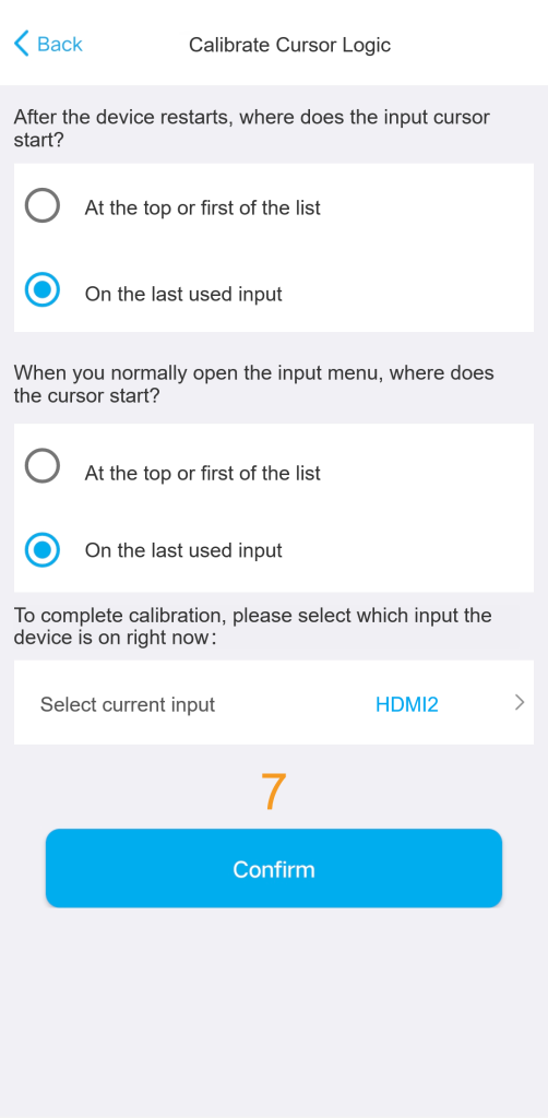 For this method, you must teach the Hub the specific button sequence required to open the device’s on-screen menu. The Hub will then use arrow, number, or input keys to select the desired source.